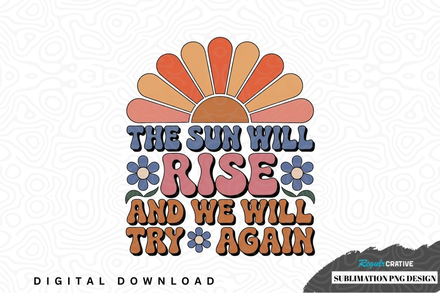 Inspirational sunrise sublimation png design was created by hand and then converted to a digital file.