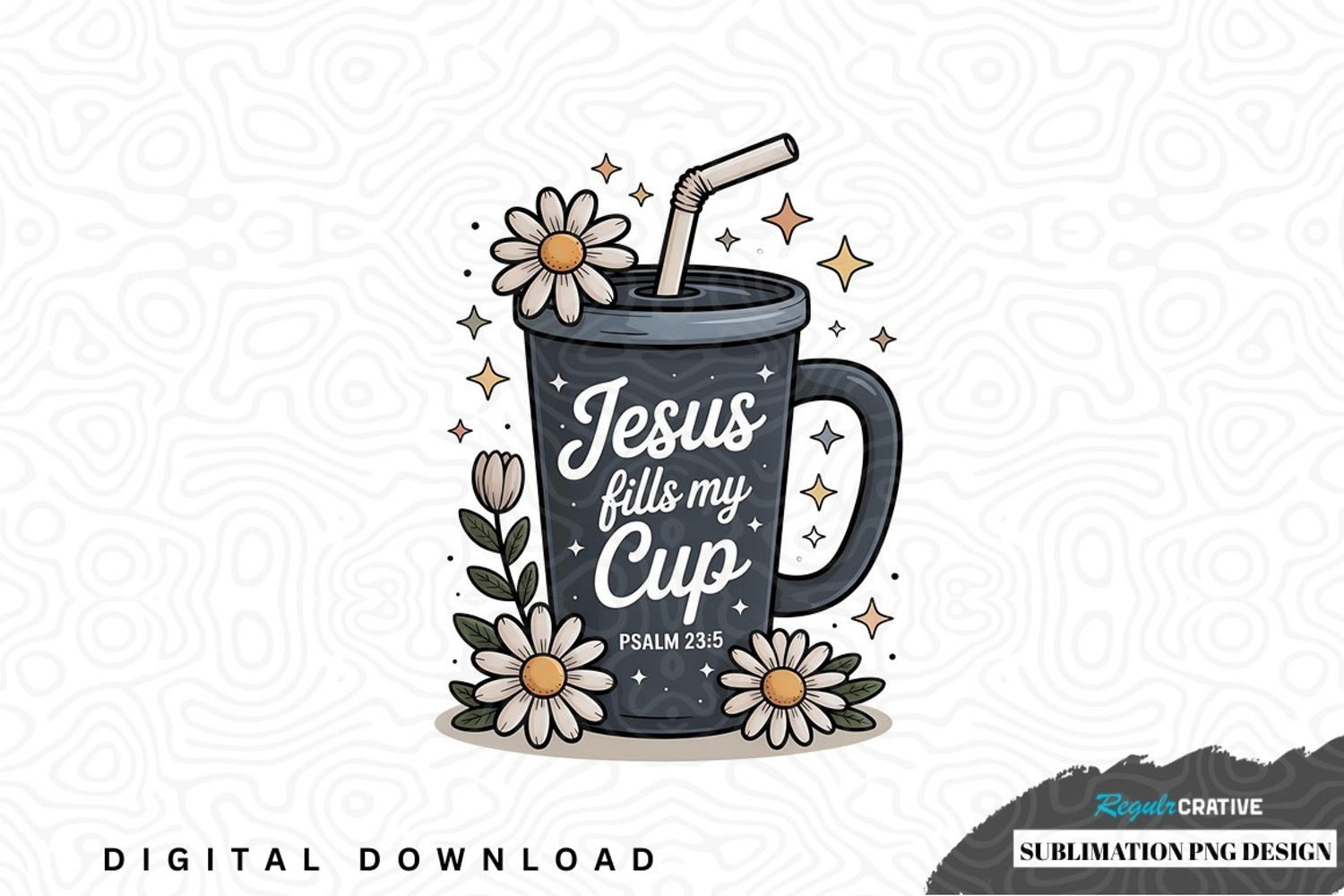 Jesus fills my cup sublimation png design was created by hand and then converted to a digital file.