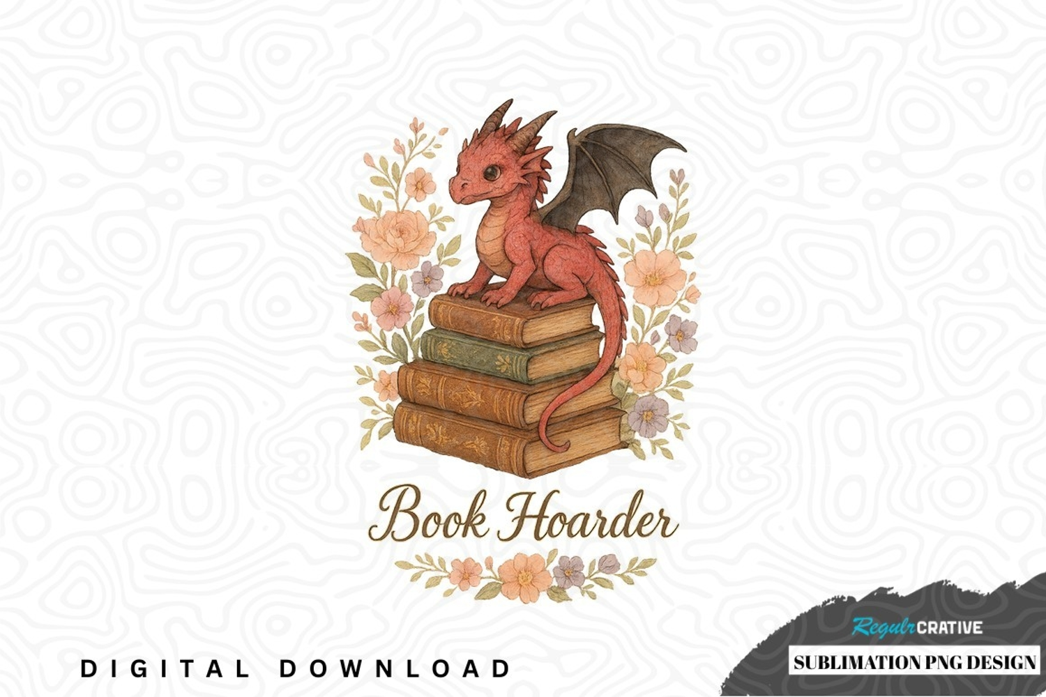 Book hoarder dragon sublimation png design was created by hand and then converted to a digital file.