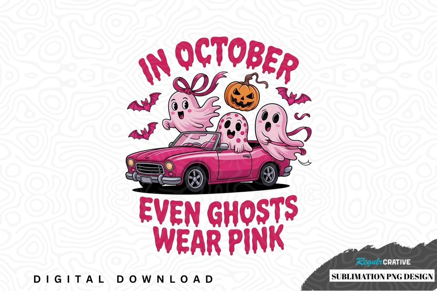 In october, even ghosts wear pink sublimation png design was created by hand and then converted to a digital file.