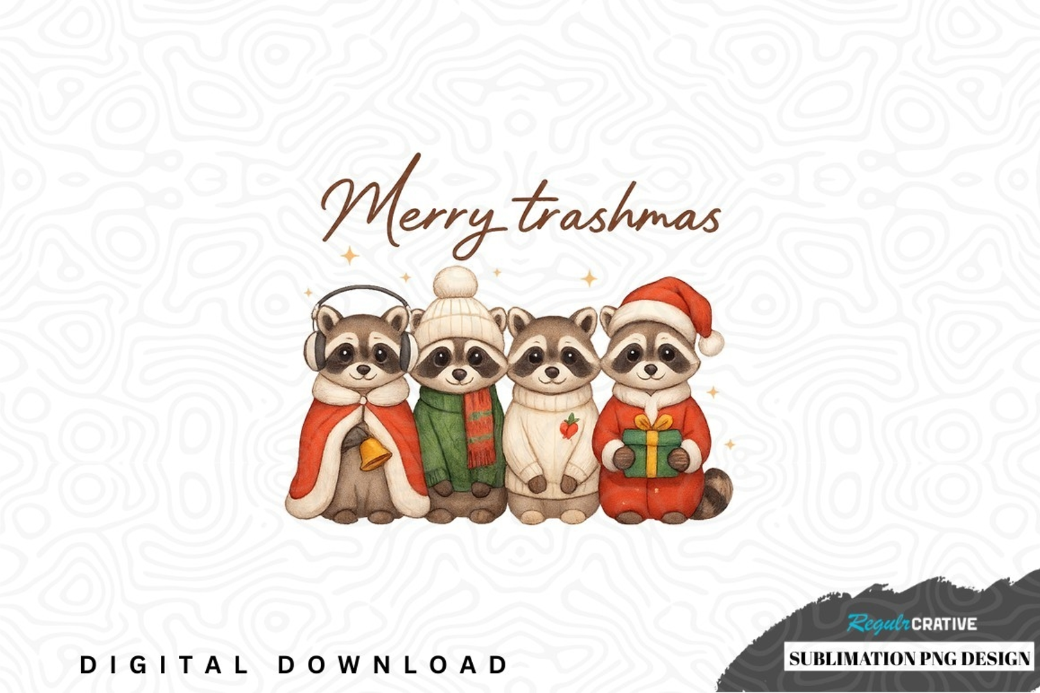 Merry trashmas raccoon family sublimation png design example image 1