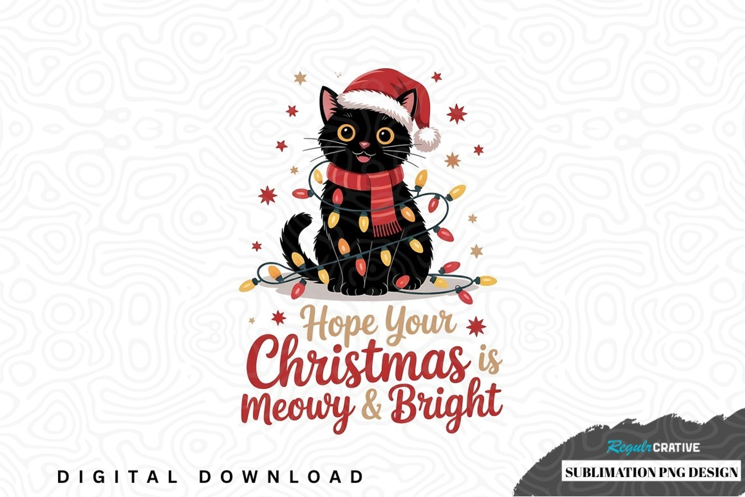 Christmas cat sublimation png design was created by hand and then converted to a digital file.