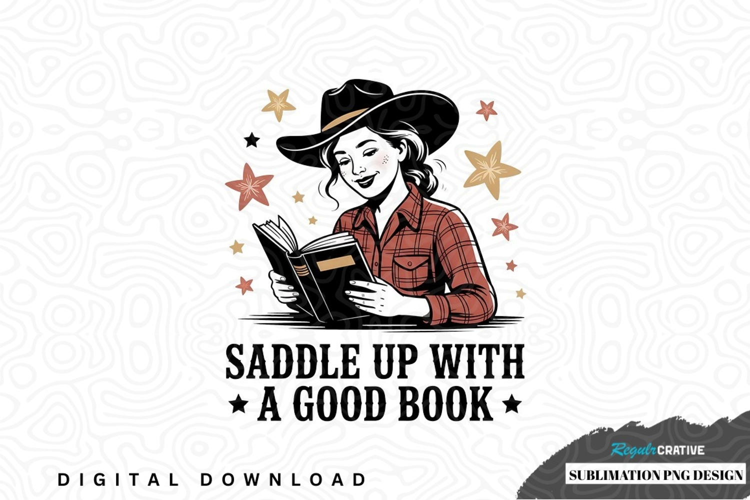 Book Illustration Western Png Stars Reading Cowgirl Literature Cowboy Hat Sublimation Design