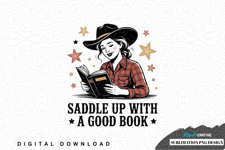 Saddle up with a good book - cowgirl reading png design example image 1