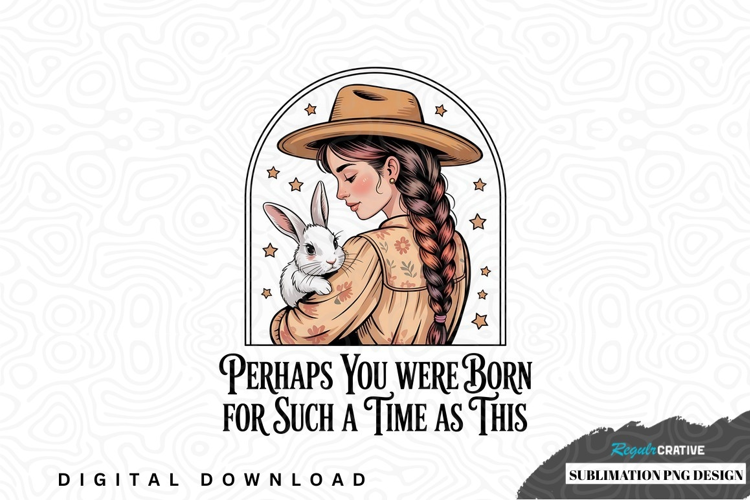 Vintage Illustration Design Girl Bunny Hat Rabbit Stars Cowgirl Sublimation