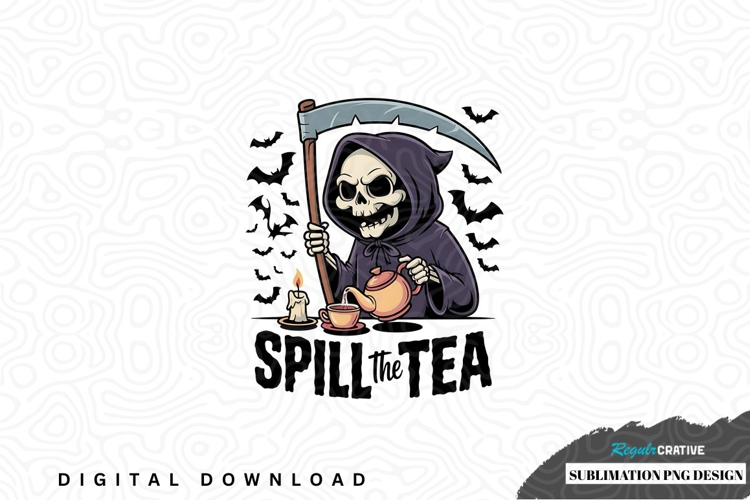 Cartoon Design Png Tea Scythe Grim Reaper Bats Sublimation Humorous Spill The Tea