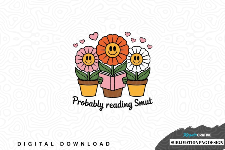 Book Funny Cute Flowers Heart Reading Humor Sublimation Smiley Png Design