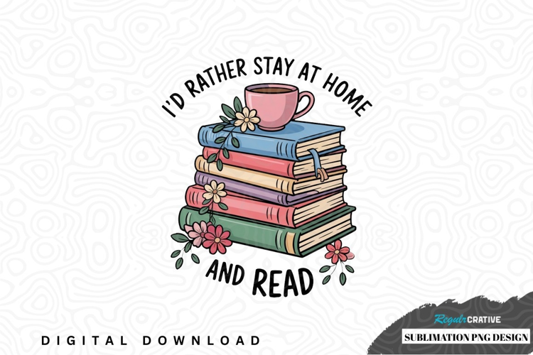 Stay at home and read sublimation png design was created by hand and then converted to a digital file.