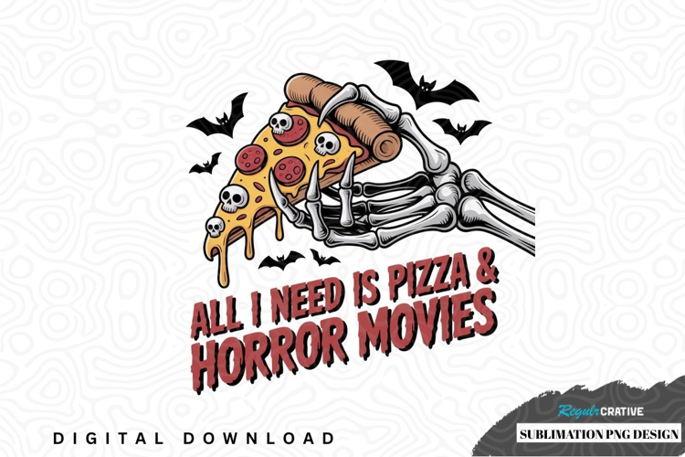 All i need is pizza & horror movies sublimation png design