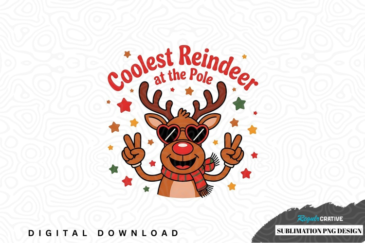 Coolest reindeer at the pole sublimation png design example image 1