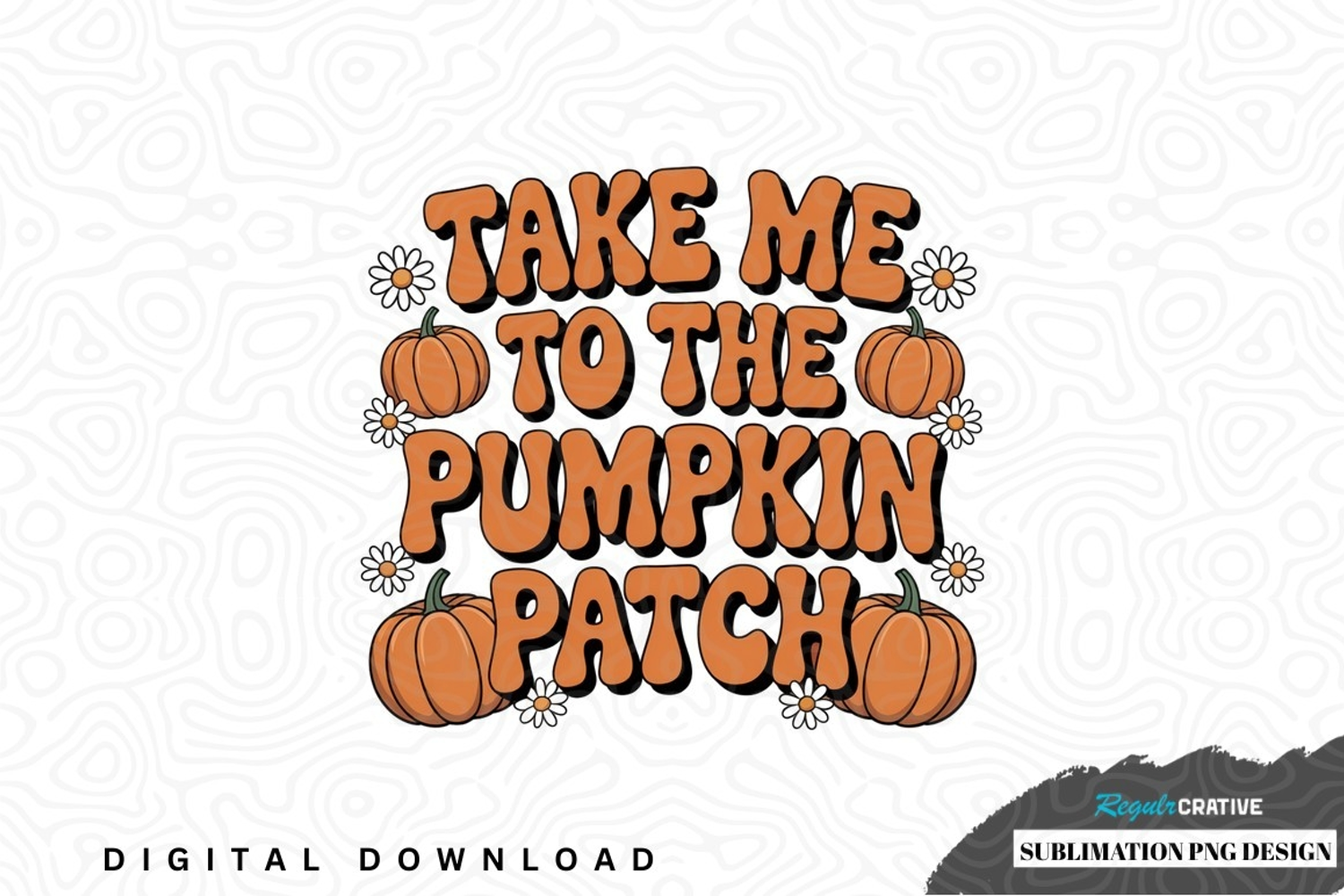 Take me to the pumpkin patch sublimation png design was created by hand and then converted to a digital file.