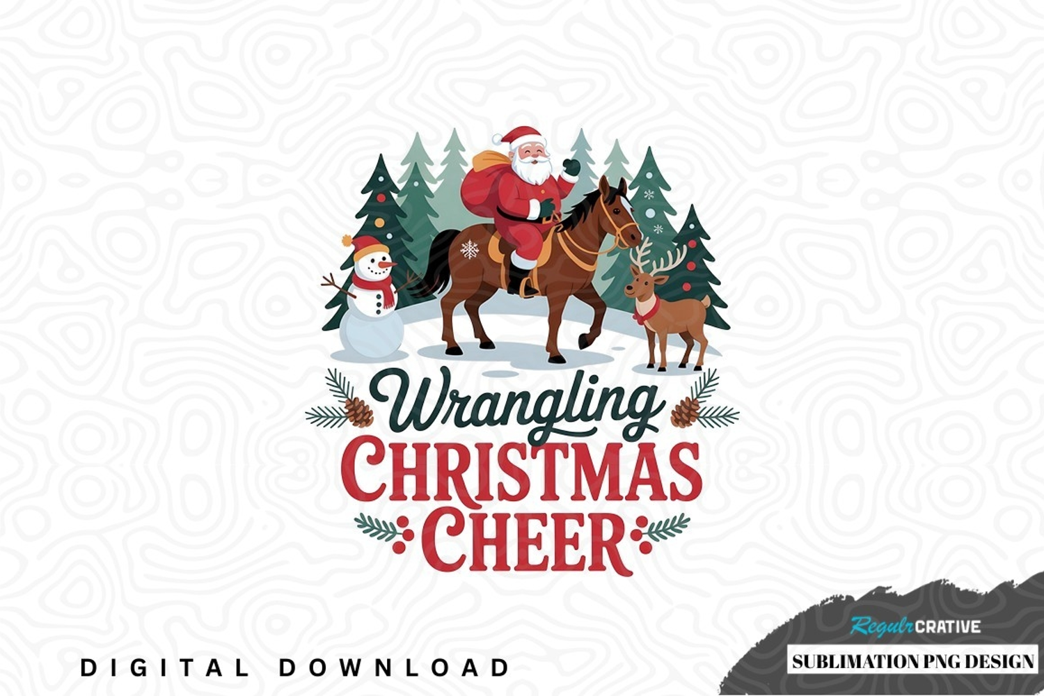 Wrangling christmas cheer sublimation png design was created by hand and then converted to a digital file.