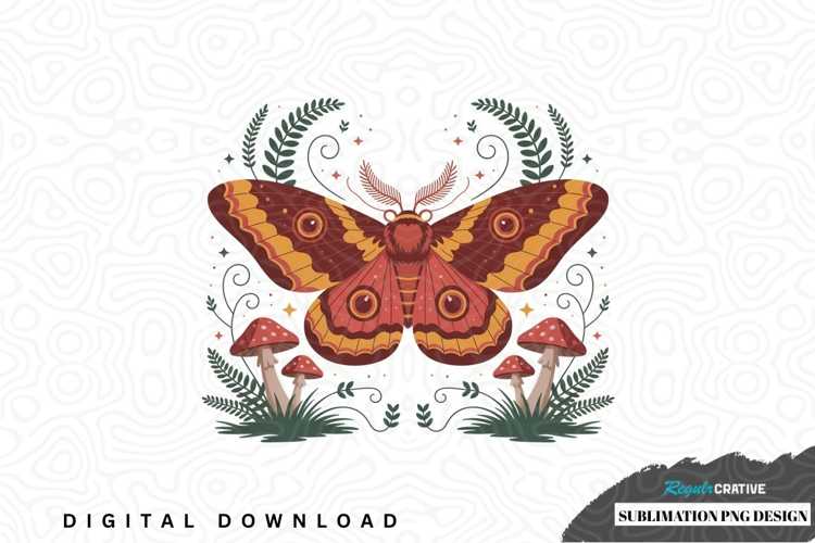 Vibrant moth and mushroom sublimation png design example image 1