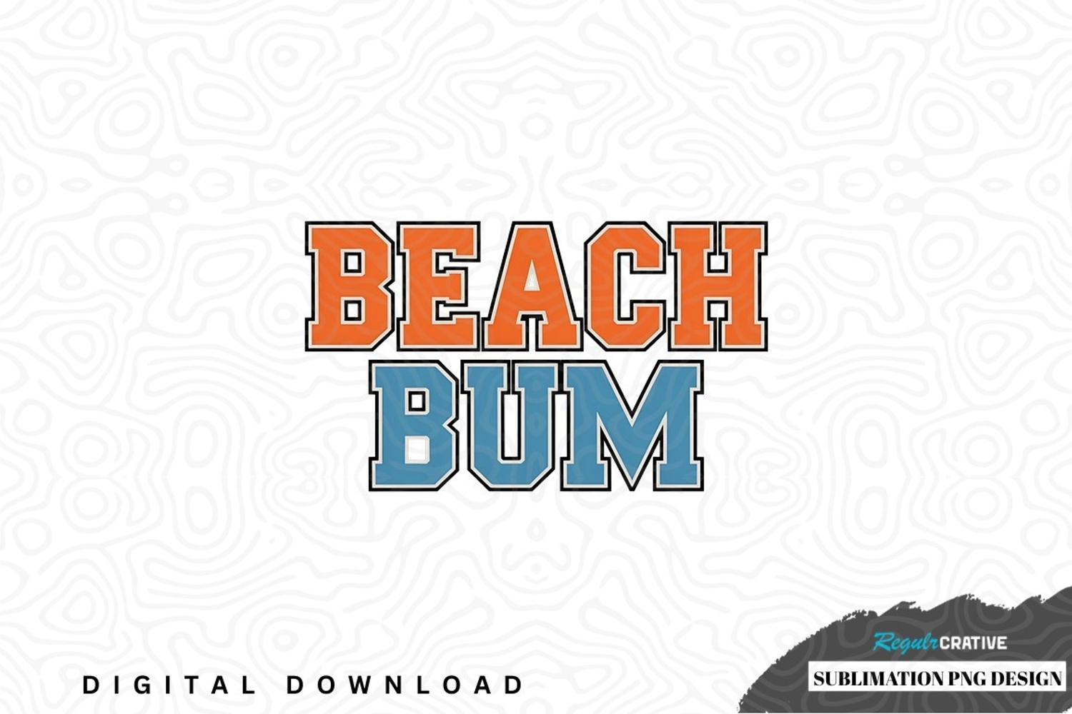 Beach bum sublimation png design was created by hand and then converted to a digital file.