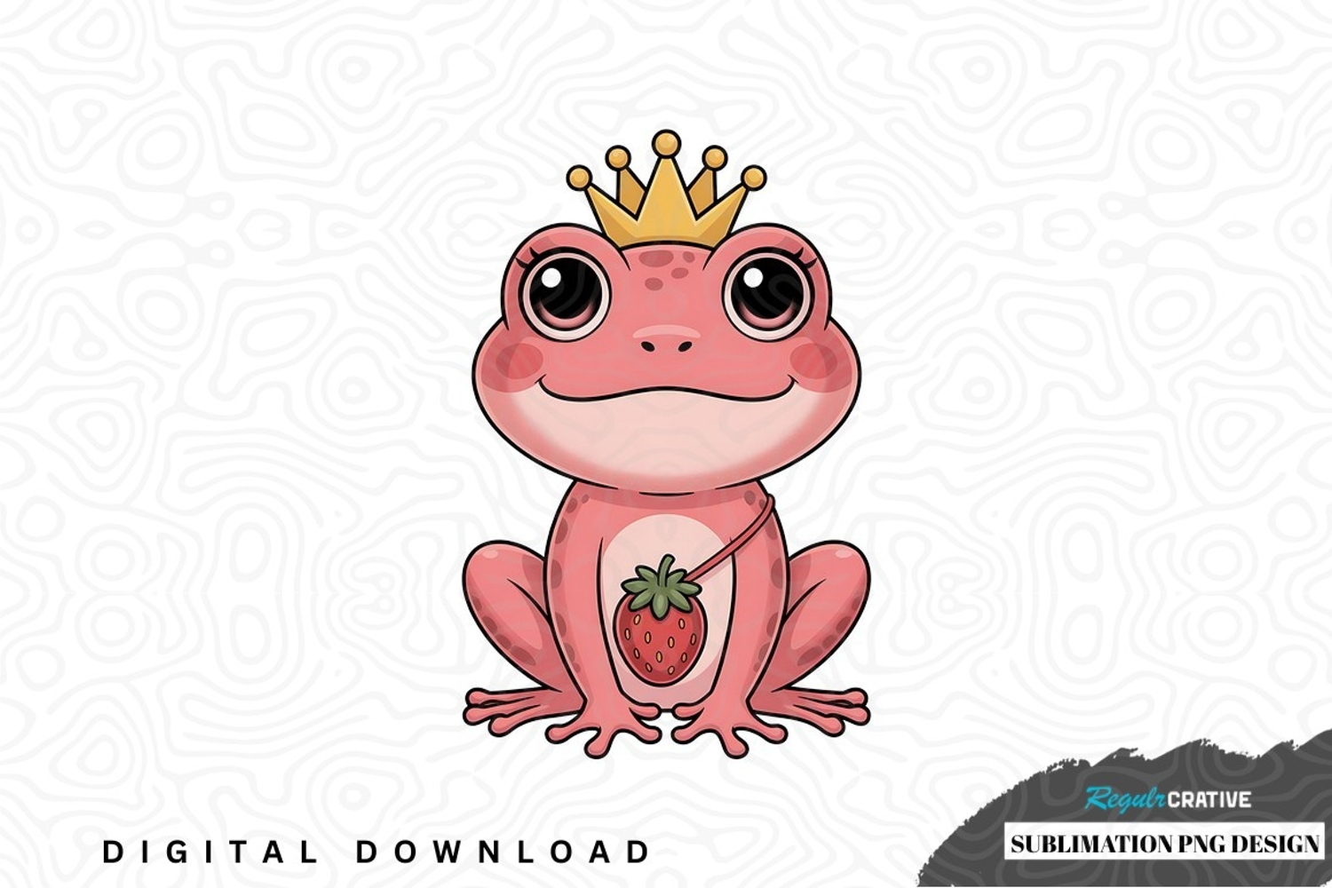 Cute frog princess sublimation png design was created by hand and then converted to a digital file.
