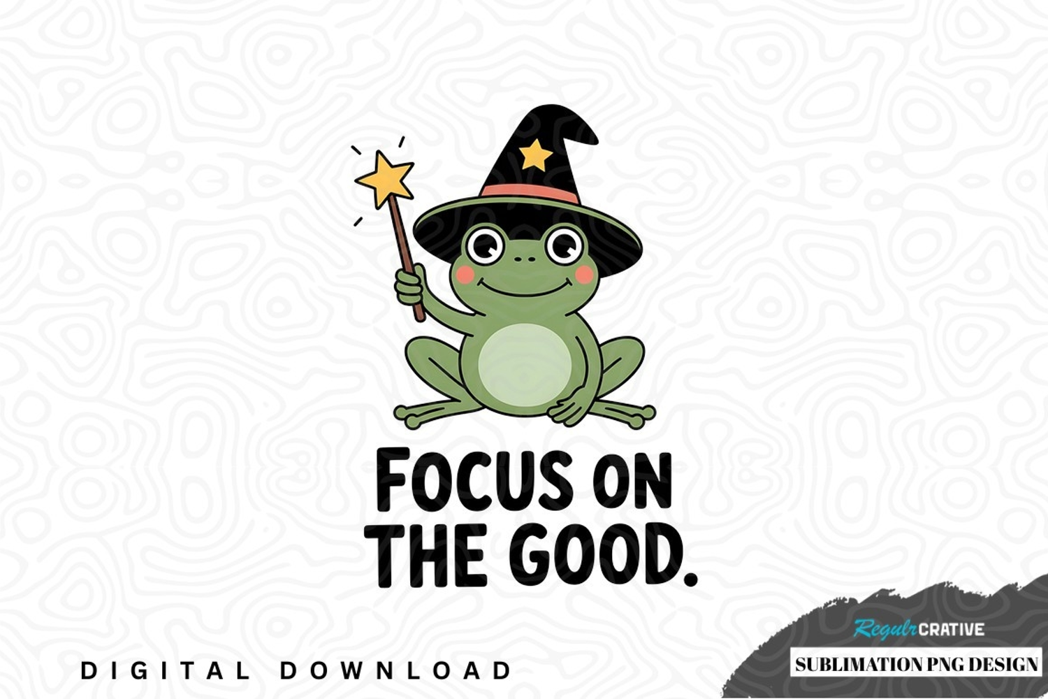 Magical frog sublimation png design was created by hand and then converted to a digital file.