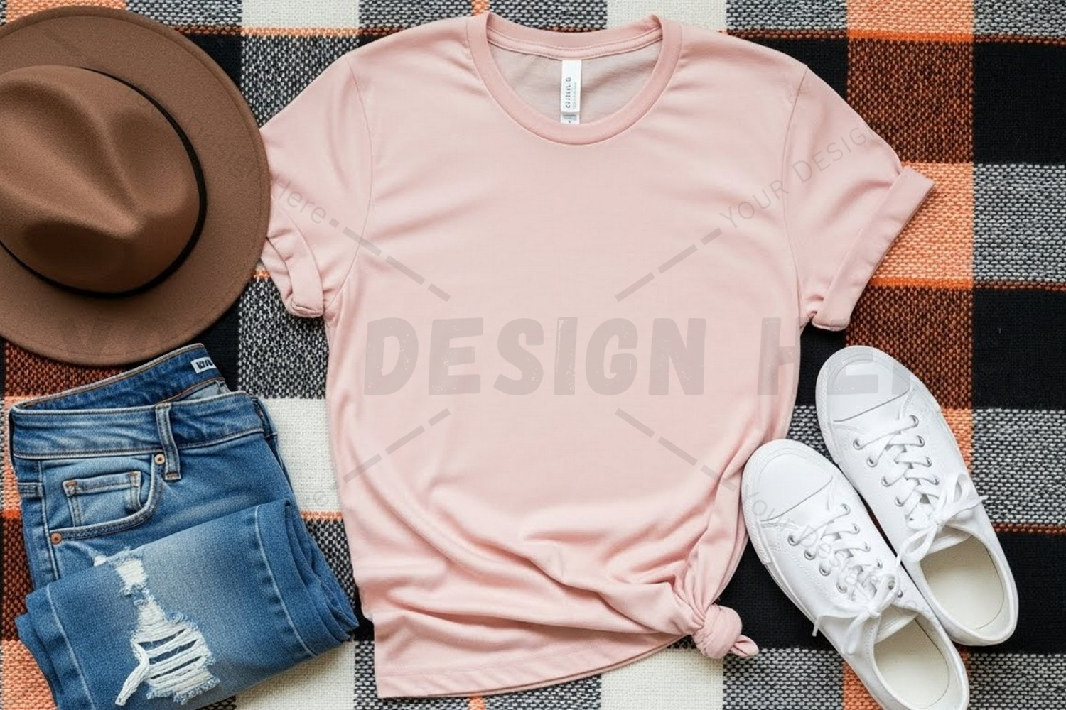 Casual pink t-shirt outfit mockup