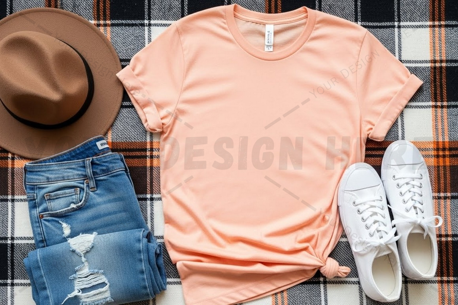 Similar Design Products to Casual peach t-shirt outfit with accessories mockup