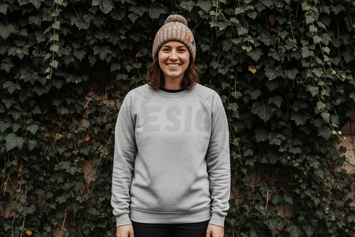Outdoor Grey Natural Background Sweatshirt Winter Fashion Fall Fashion Casual Wear Knitted Beanie Comfortable Clothing Ivy Wall