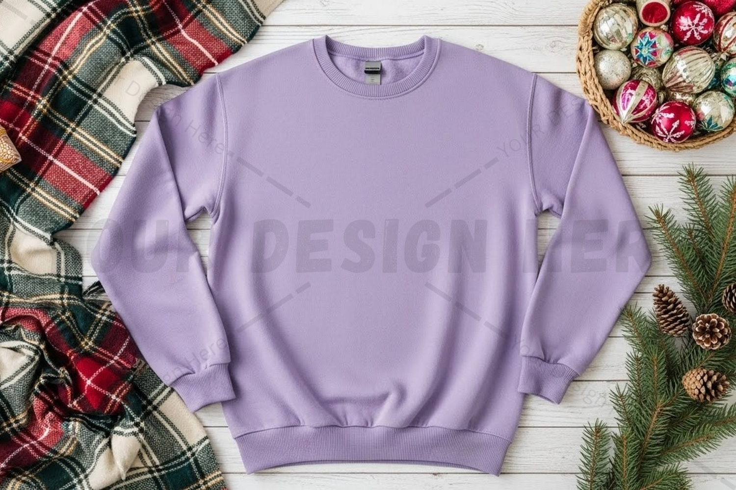 Ornaments Holiday Design Clothing Christmas Mockup Lavender Plaid Sweater Sweatshirt