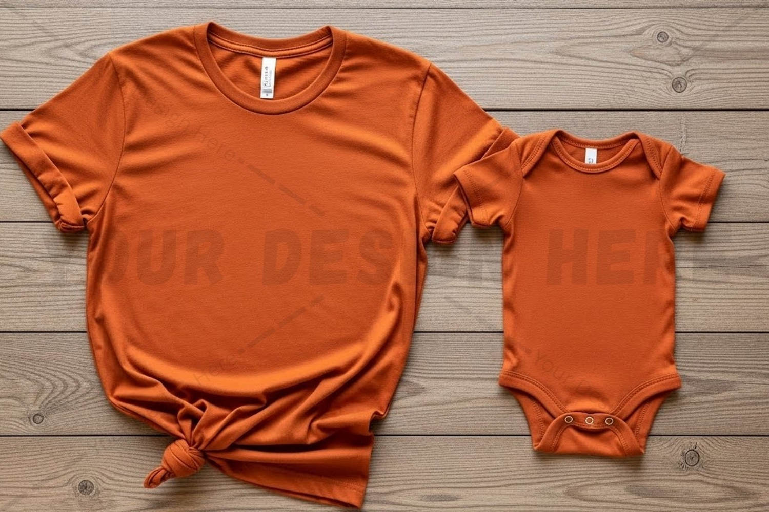 Similar Design Products to Burnt orange t-shirt and onesie set t-shirt mockup design