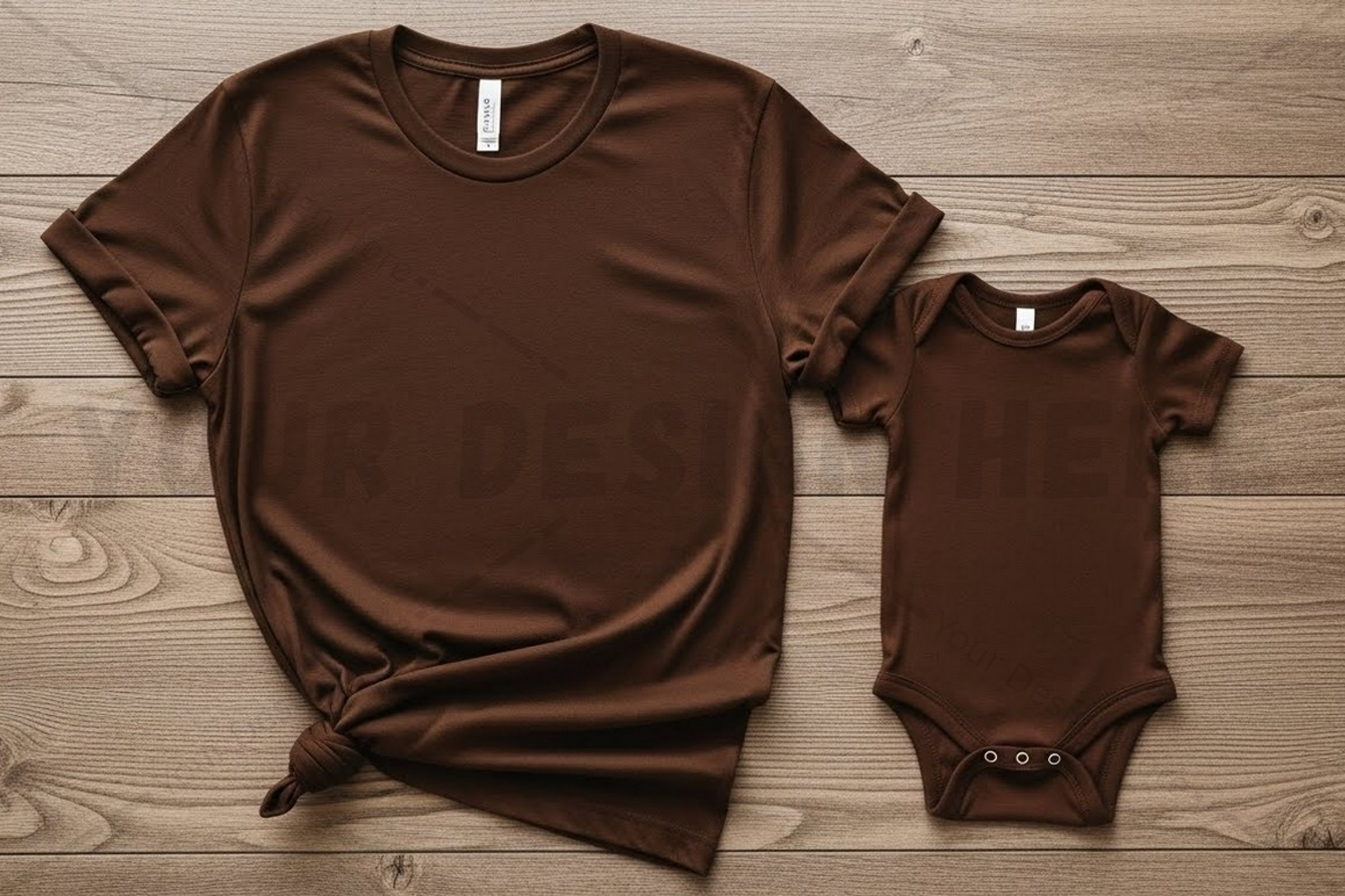 Similar Design Products to Matching brown t-shirt and onesie set t-shirt mockup