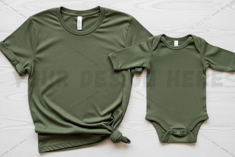 Matching olive green t-shirt mockup design example image 1