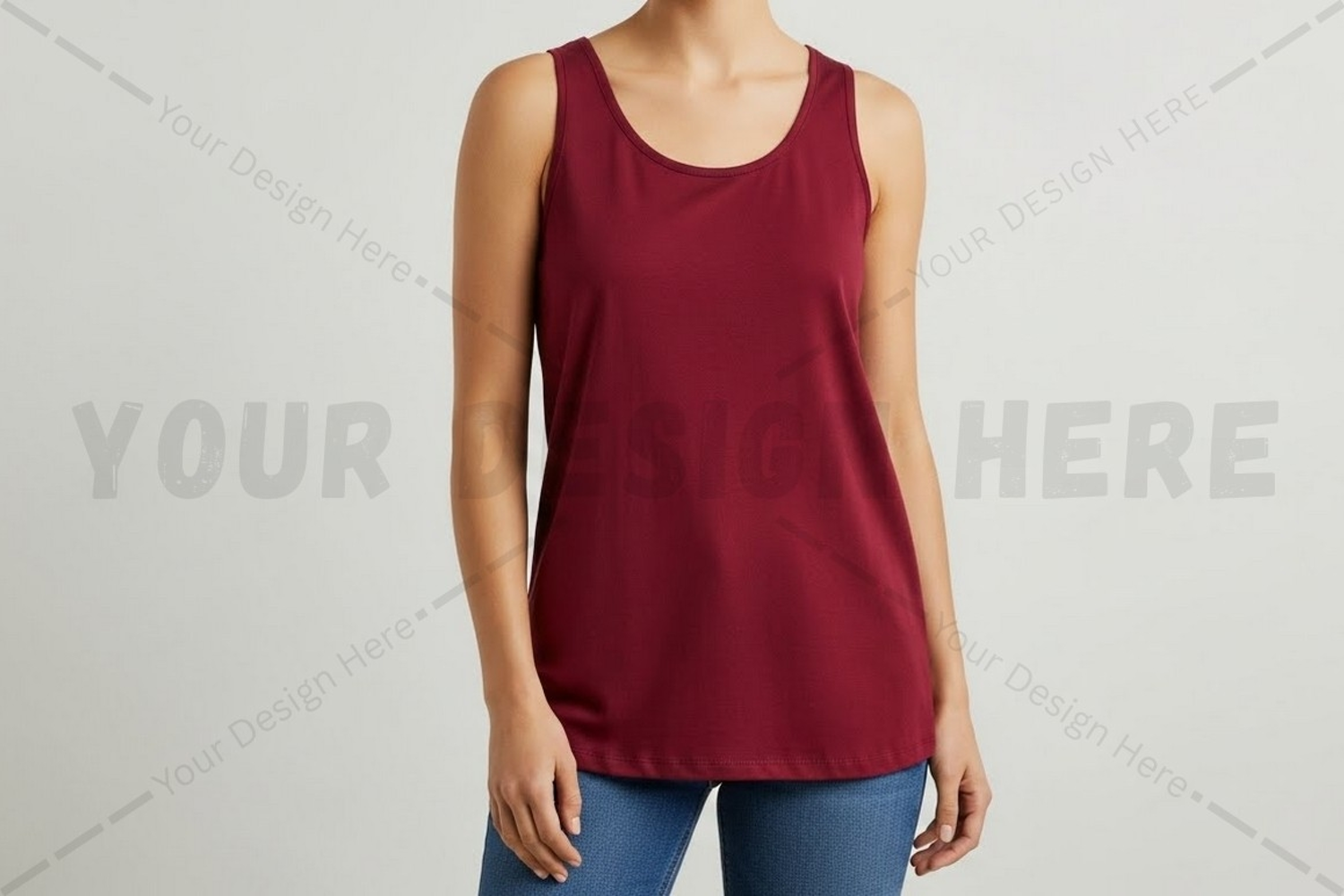 Similar Design Products to women's burgundy sleeveless t-shirt mockup
