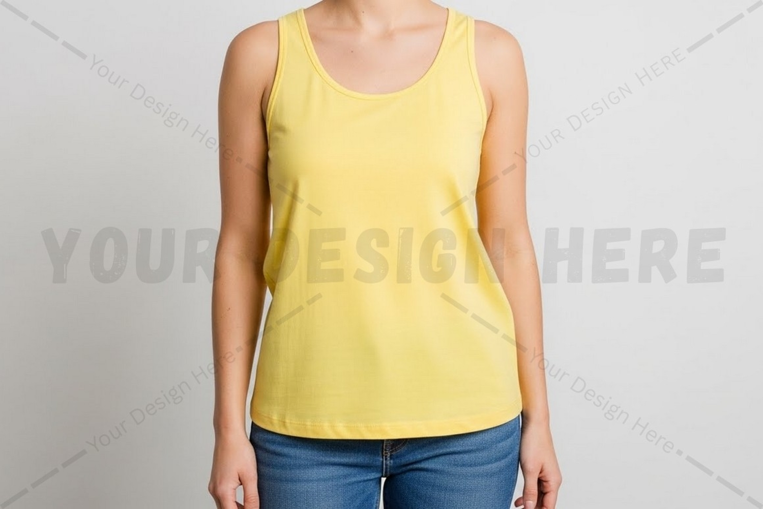 Bright yellow women's tank top t-shirt mockup design example image 1