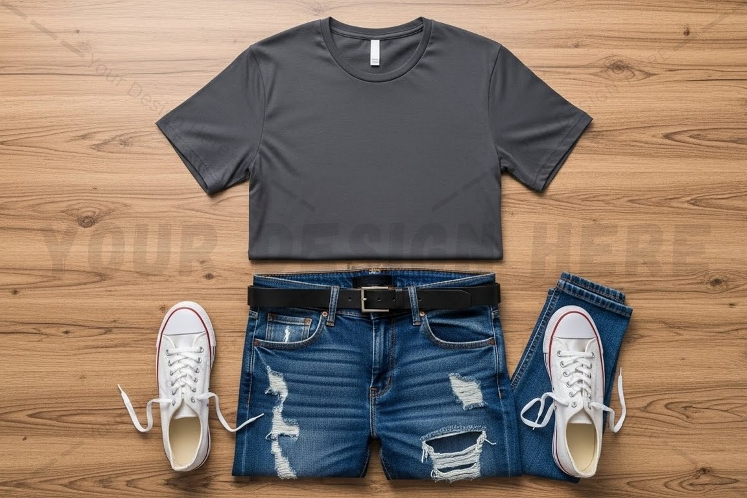 Casual outfit with gray t-shirt mockup