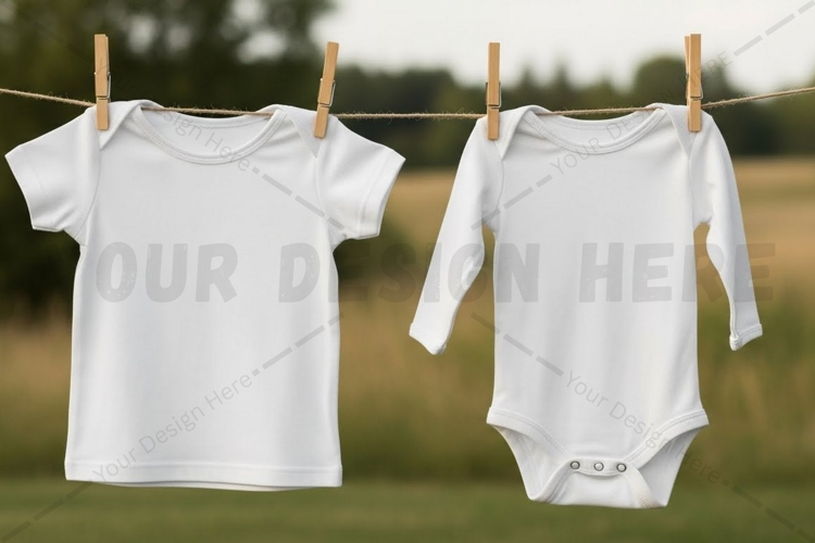 T-shirt Clothing Mockup Outdoor White Clothesline Baby Clothing Short-sleeved Long-sleeved Snap Closure