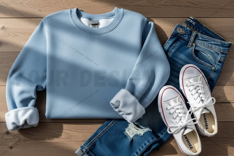 Casual outfit with light blue sweatshirt mockup