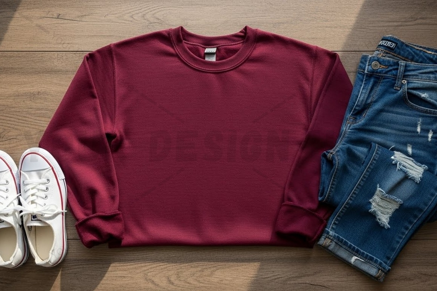 Casual outfit with burgundy t-shirt mockup