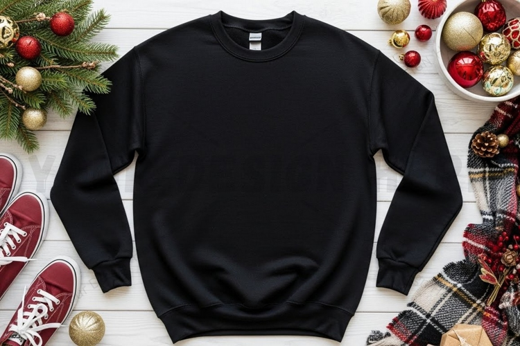 Ornaments Holiday Black T-shirt Christmas Mockup Branches Pine Plaid Sneakers