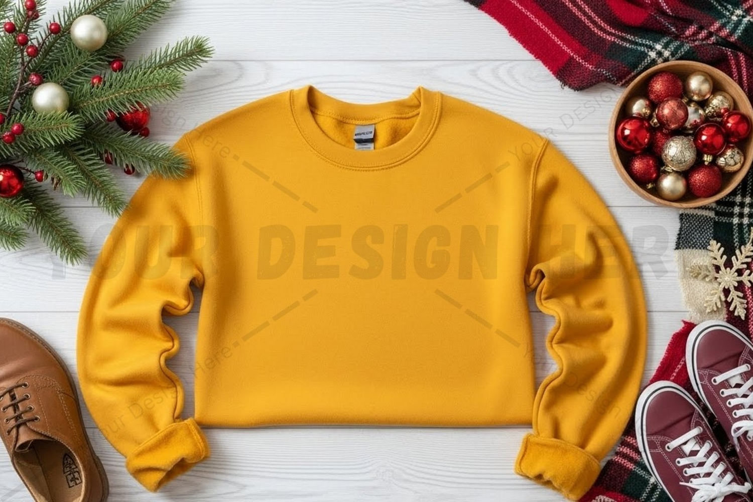 Mustard yellow cropped sweatshirt with christmas mockup example image 1
