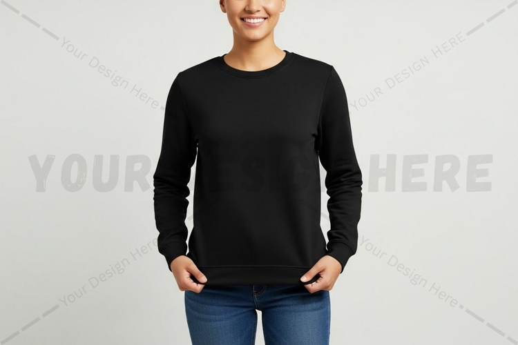 Branding Fashion Design T-shirt Clothing Mockup Apparel Long Sleeve Black T-shirt Casual Wear