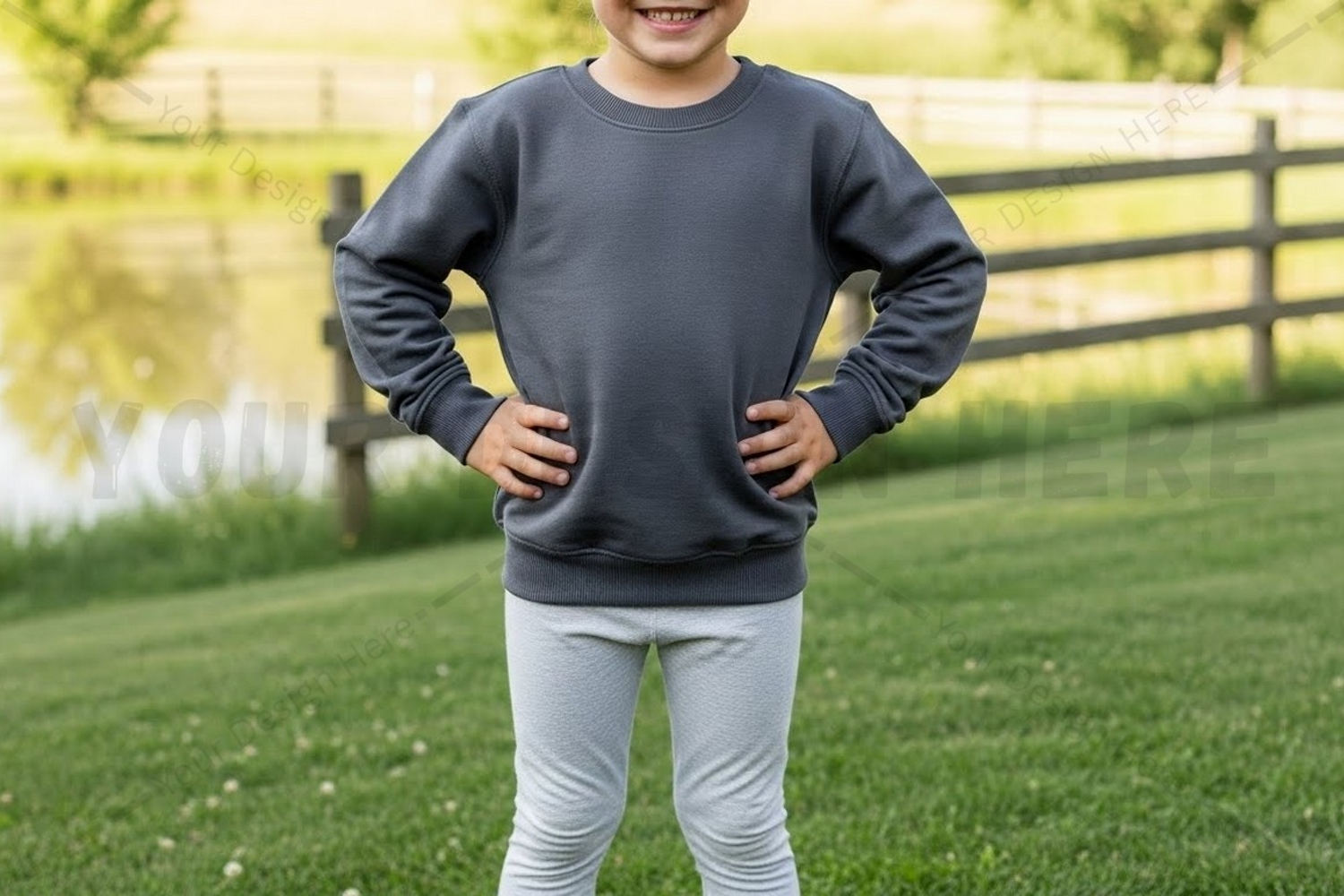 Kids' casual outdoor sweatshirt and pants set mockup design example image 1