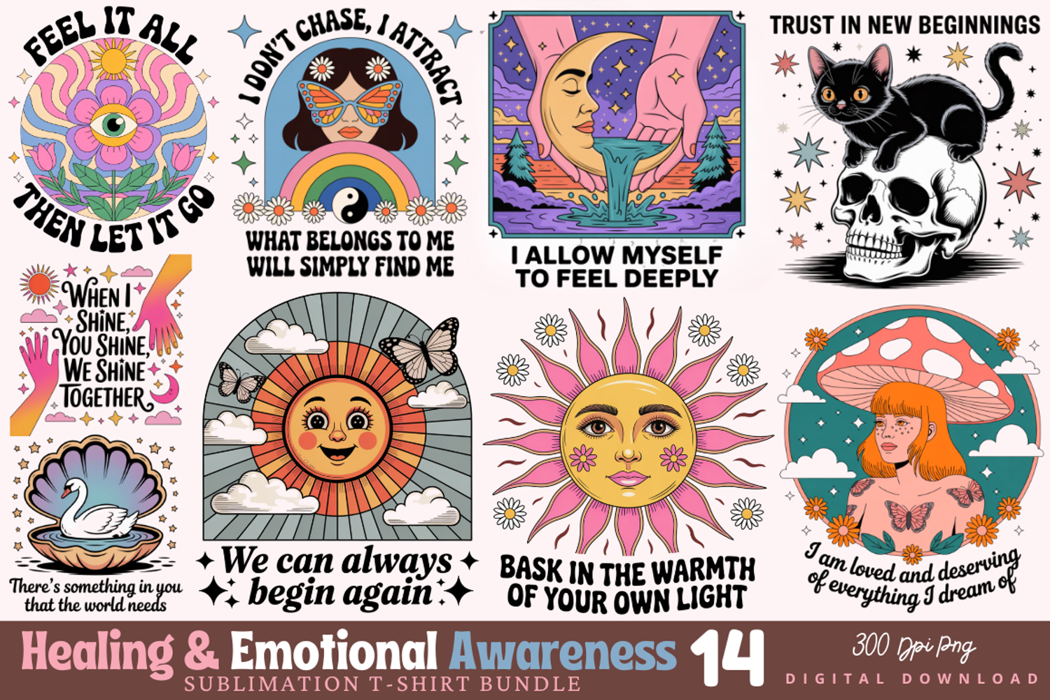 - Transparent Backgrounds: Ready for instant use on any colored fabric, mug, or digital canvas.