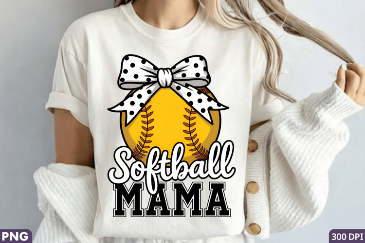 A vibrant and eye-catching sublimation PNG design featuring a softball with a decorative bow and the text 'Softball Mama'. Perfect for apparel, accessories, and various DIY crafts. High-quality PNG file. 300 DPI for optimal print quality. Ideal for sublimation printing on mugs, t-shirts, and other fabric items.. Compatible with Cricut and other cutting machines for precise crafting.. Suitable for direct printing on various materials including paper, fabric, and ceramics.. Great for DIY projects such as scrapbooking, card making, and custom embroidery designs, making it ideal for ,and other entrepreneurial ventures.