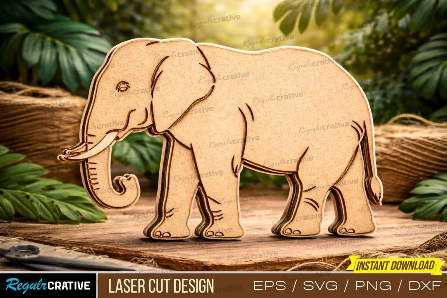 Elephant Laser Cut Design – Detailed Wooden Animal Outline for Craft & Décor