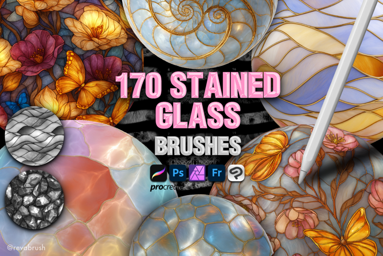 This brush set is designed for artists, illustrators and designers who want realistic glass effects without spending hours painting highlights and lead lines manually.