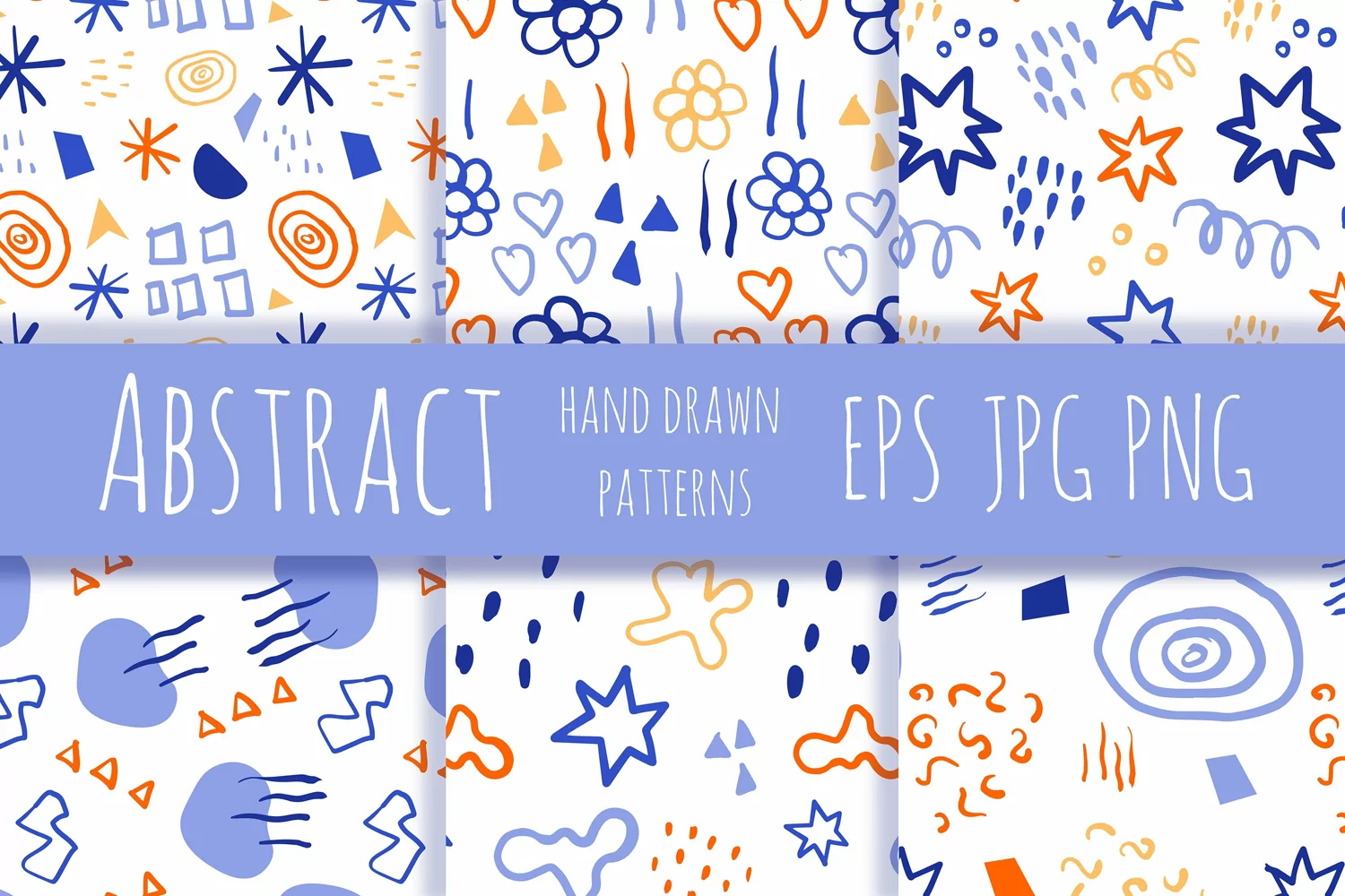 Abstract hand drawn digital paper collection includes 6 colorful seamless patterns in trendy simple and cute style~