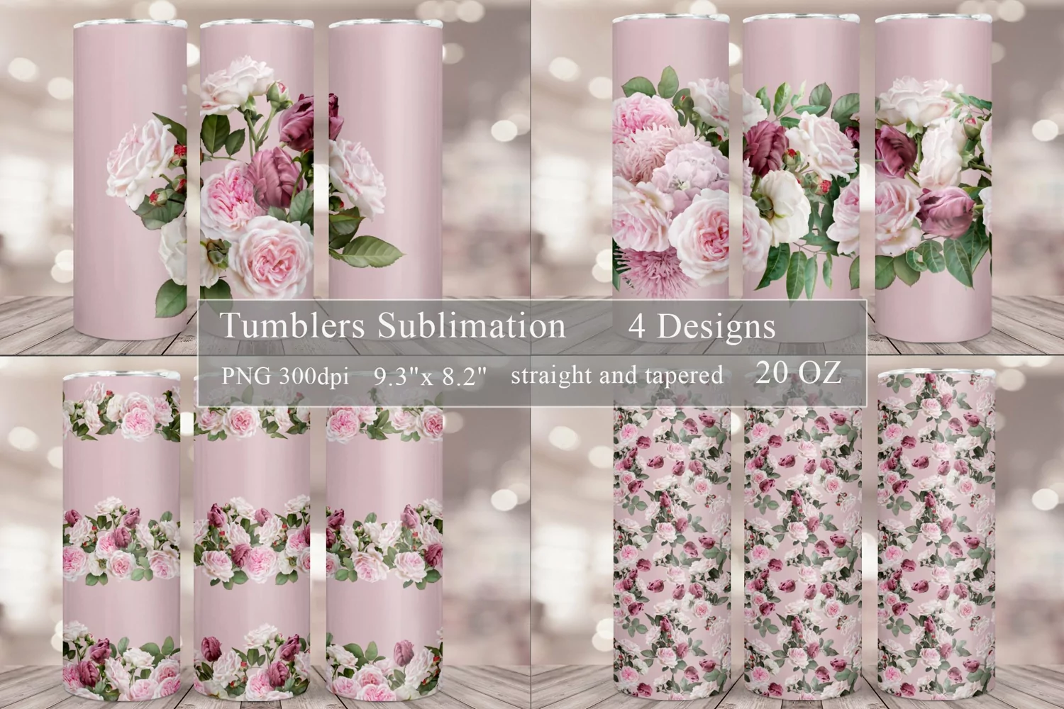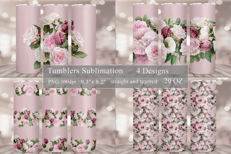 Floral Tumbler Sublimation Bundle | Roses Tumbler Wrap 20oz
