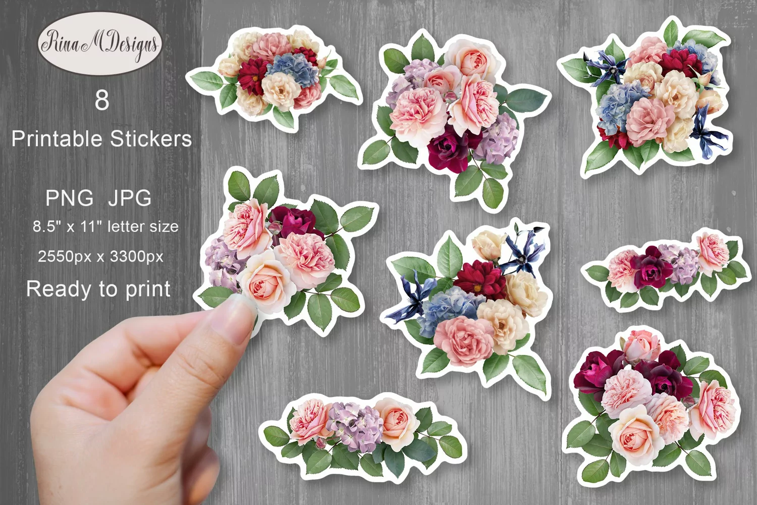 Planner Stickers Floral Stickers Printable Stickers Print And Cut Stickers Sticker Sheet Cricut Stickers Flowers Stickers Printable Stickers For Cricut Flowers Sticker Bundle Roses Stickers