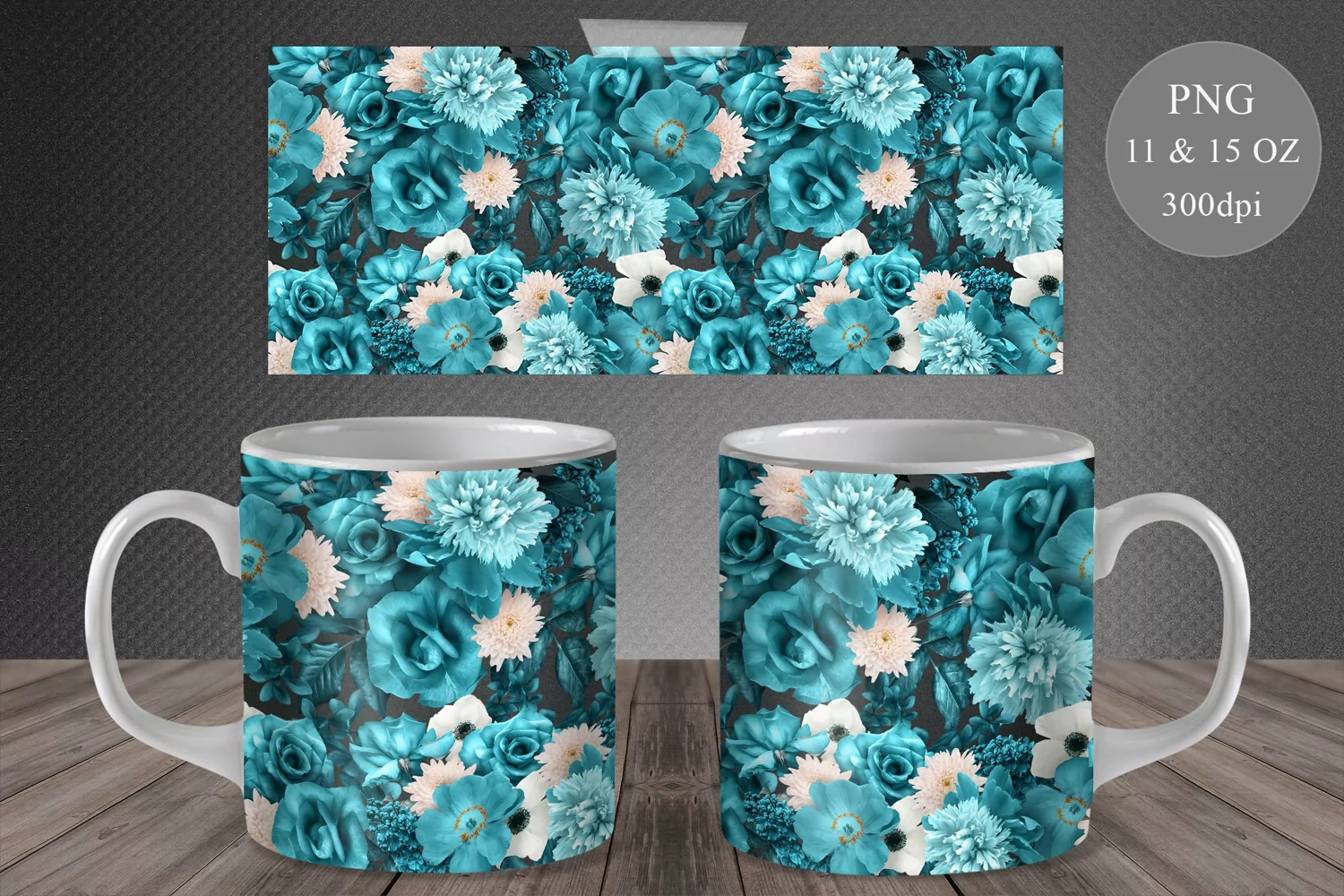 Mug Sublimation Floral Mug Sublimation Mug Wrap Png Floral Mug Wrap Png Flower Mug Wrap Flowers Mug Sublimation 11 Oz 15 Oz Mug Dark Floral Dutch Teal Flowers Mug Wrap Teal Roses Mug Sublimation