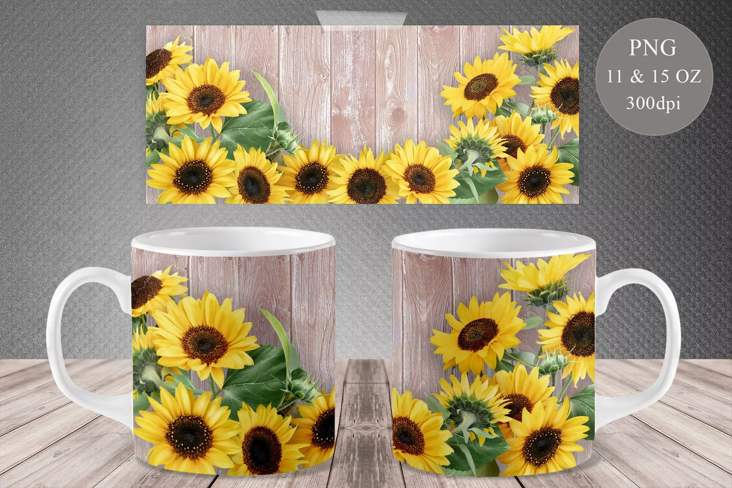 Sunflowers Wood Mug Sublimation | Rustic Flowers Mug Wrap example image 1