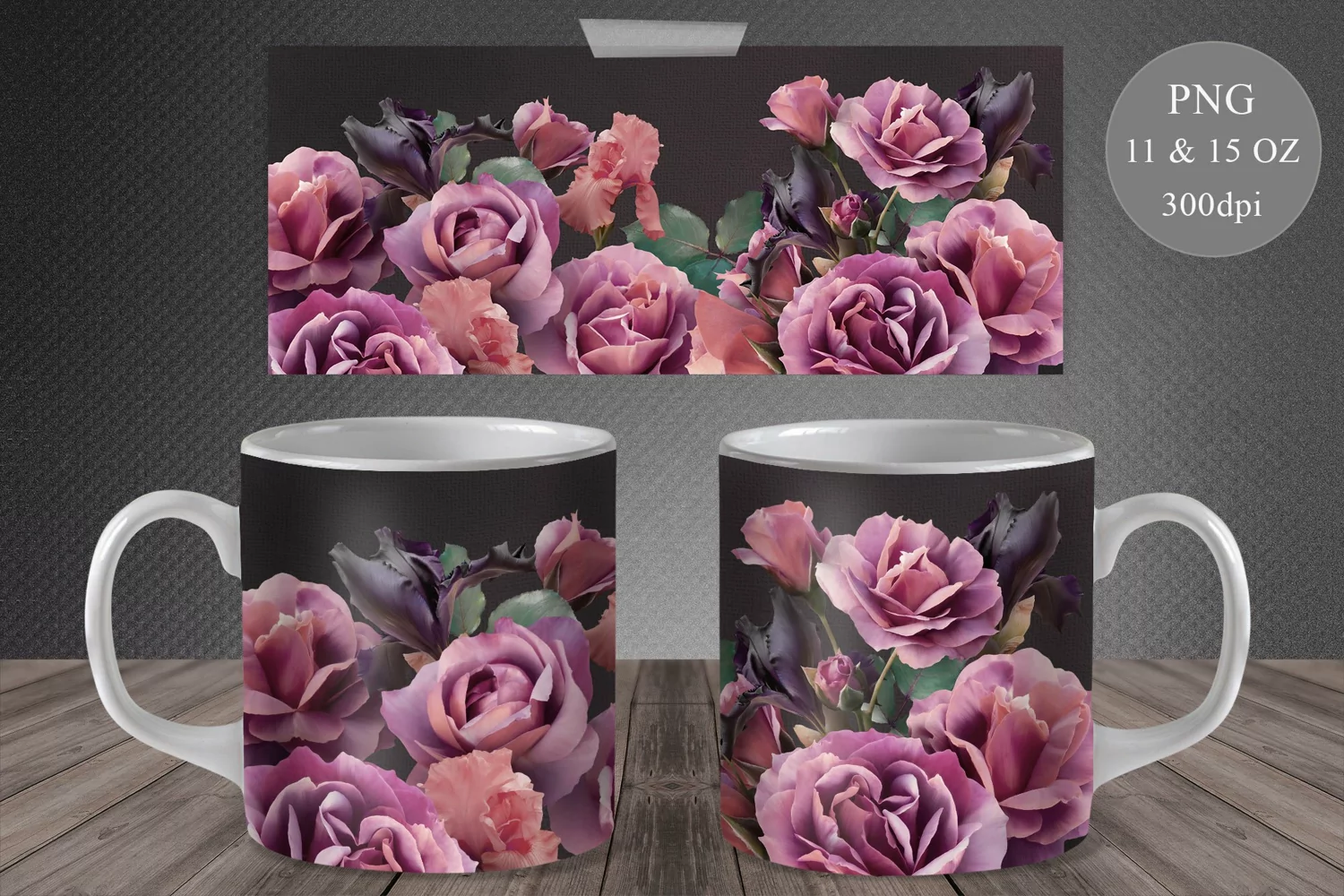 Roses Mug Sublimation. Floral Mug Wrap. 11&15 OZ