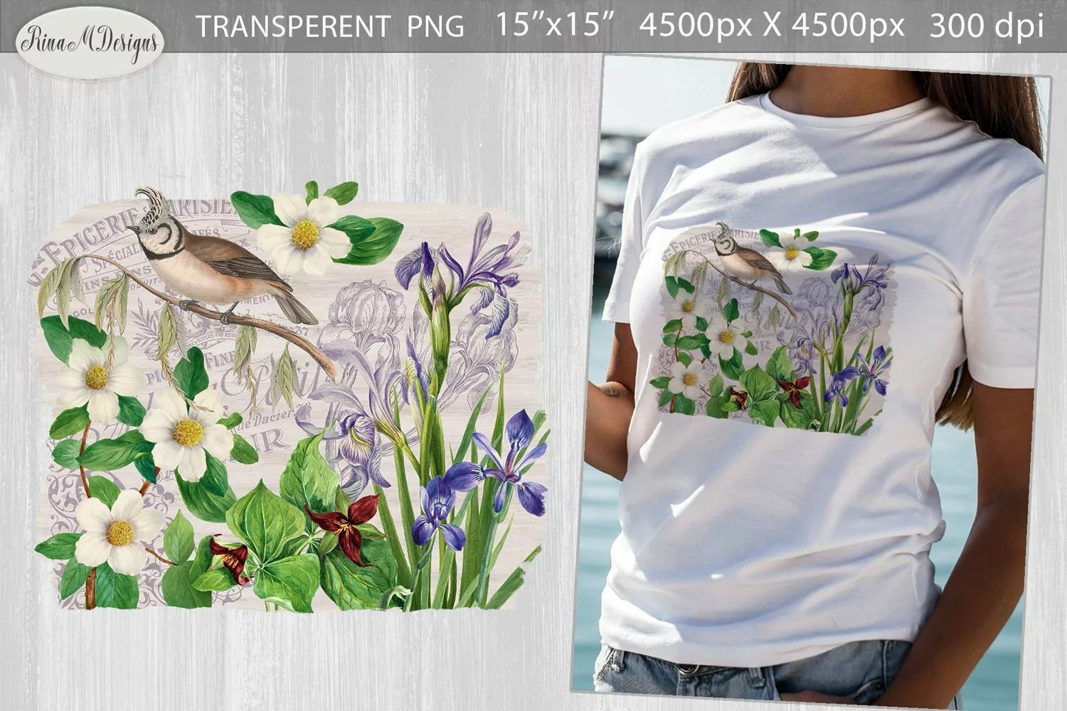 Vintage Floral Sublimation | Flowers and Bird Sublimation example image 1