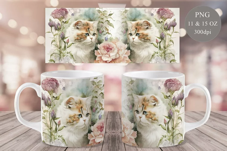 Mug Template Mug Sublimation Mug Press Design 11 Oz Mug Template 15 Oz Mug Wrap Digital Mug Wrap Cat Mug Wrap Cute Cat Mug Sublimation Watercolor Cat Mug