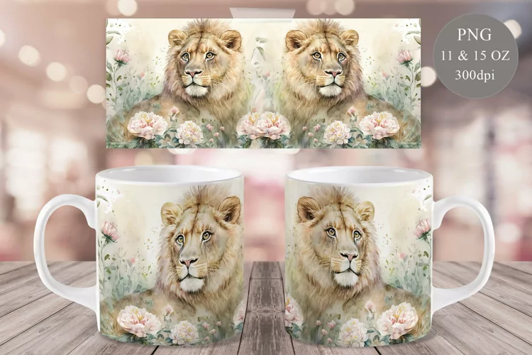 Mug Template Mug Sublimation Mug Press Design 11 Oz Mug Template 15 Oz Mug Wrap Digital Mug Wrap Lion Mug Sublimation Lion Mug Wrap Lion Watercolor Mug